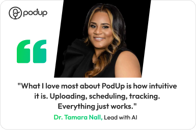Watch this video to explore PodUp’s most popular features and our favorite AI tools. From signing up to learning the workflow, we’ll walk you through every step so you can start off on the right foot.