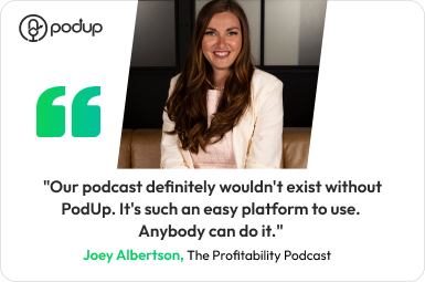 Get instant access to our 22-video lesson series that walks you through steps of launching your podcast. This interactive course shows you how to use PodUp's platform and build a successful show without the overwhelm.