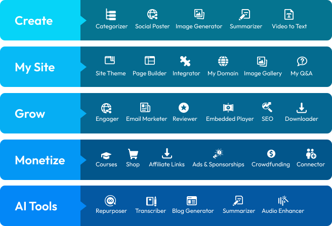 Want to distribute your podcast across multiple platforms without manual uploads? The Integrator enables you to syndicate content to 20+ social media, podcast, and video platforms instantly or schedule for future publishing, expanding your reach across channels.